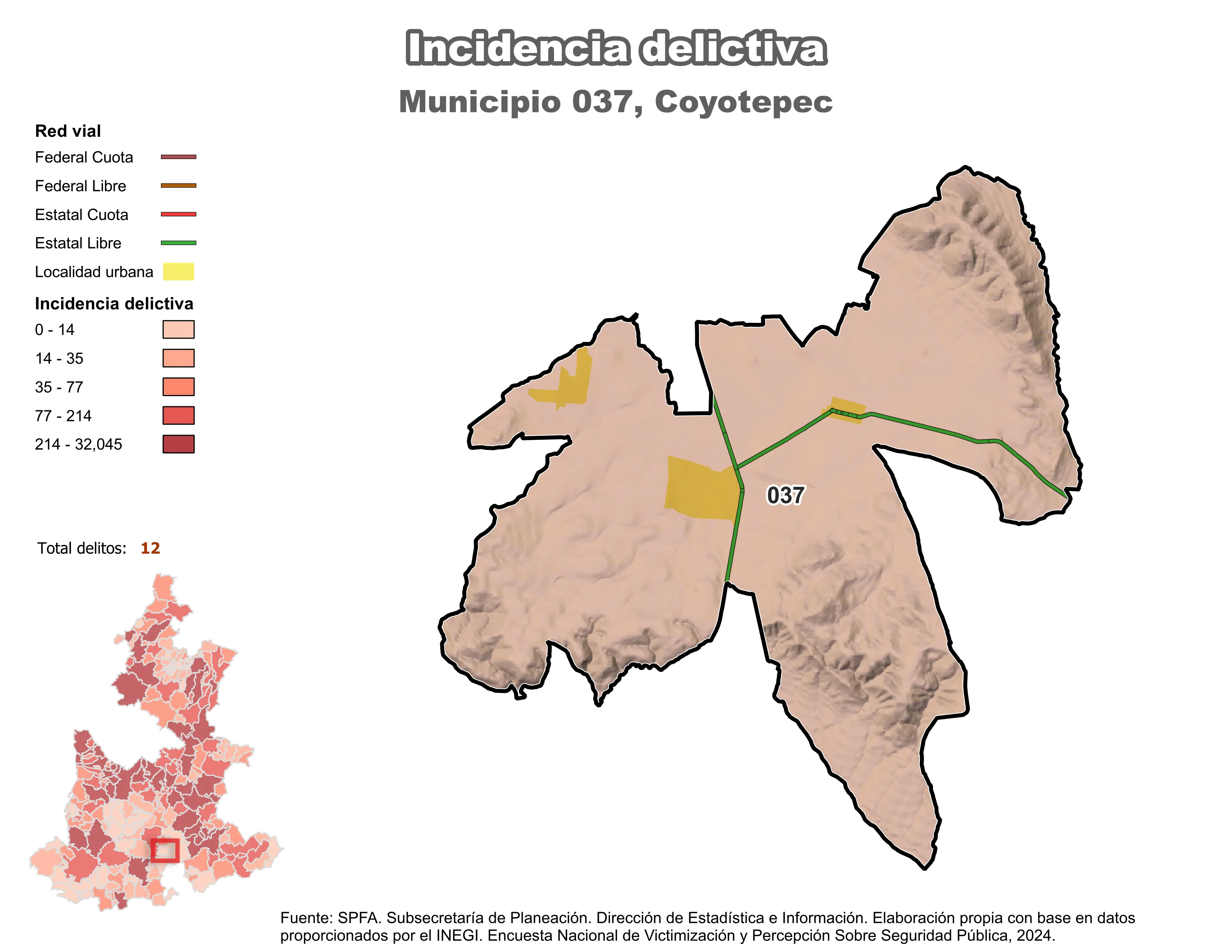 Fuente: SPFA. Subsecretaría de Planeación; Dirección de Estadística e Información; Elaboración propia con base en datos proporcionados por el Secretariado Ejecutivo del Sistema Nacional de Seguridad Pública (SESNSP), Incidencia delictiva del Fuero Común, 2024.